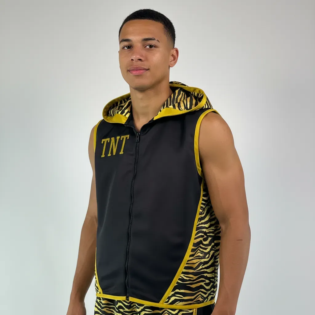 Have you recently designed your own boxing shorts and trunks? Create a personalised boxing vest, jacket or singlet for a matching two piece in time for your fight. Choose colours that fit your personality and materials you know you will feel most comfortable in. Whether you want a long or short sleeved boxing jacket, we can create it to your specification. If you are stuck for ideas, then take a look at our boxing jacket gallery portfolio to gain some inspiration. We have many examples from past creations to help you get your creative thoughts flowing!