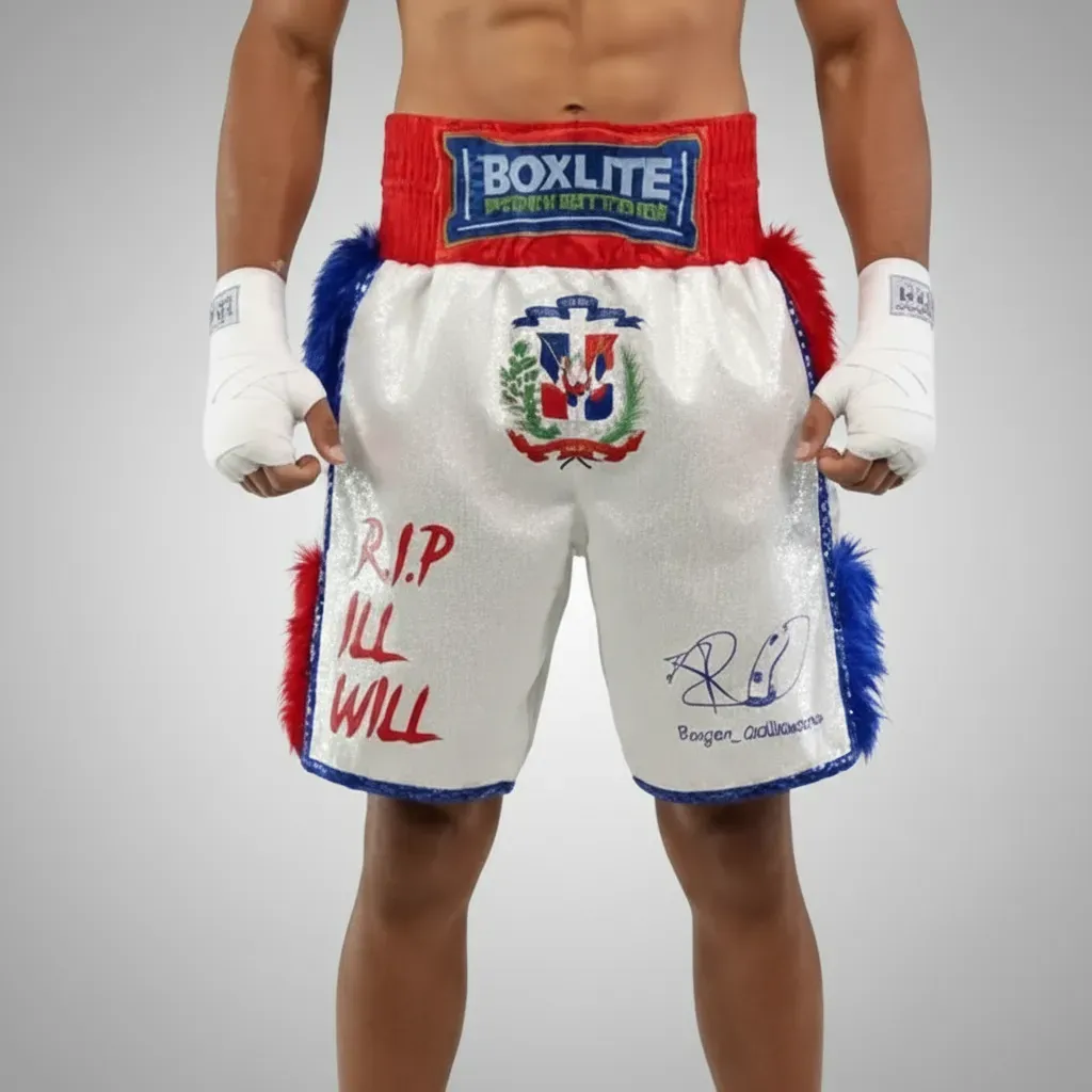 Using Boxxerworld’s unique customising technology, you can now design your own boxing shorts and trunks with ease. Select a style template below to begin the quick and easy design process. Many of our boxing shorts templates are based on styles worn by professional fighters such as Floyd Mayweather and more. For those wanting a simple design you may choose to personalise our popular classic template. For fighters who want a more varied design, check out our ‘All Mayweather’ or ‘A Star Quality’ templates.