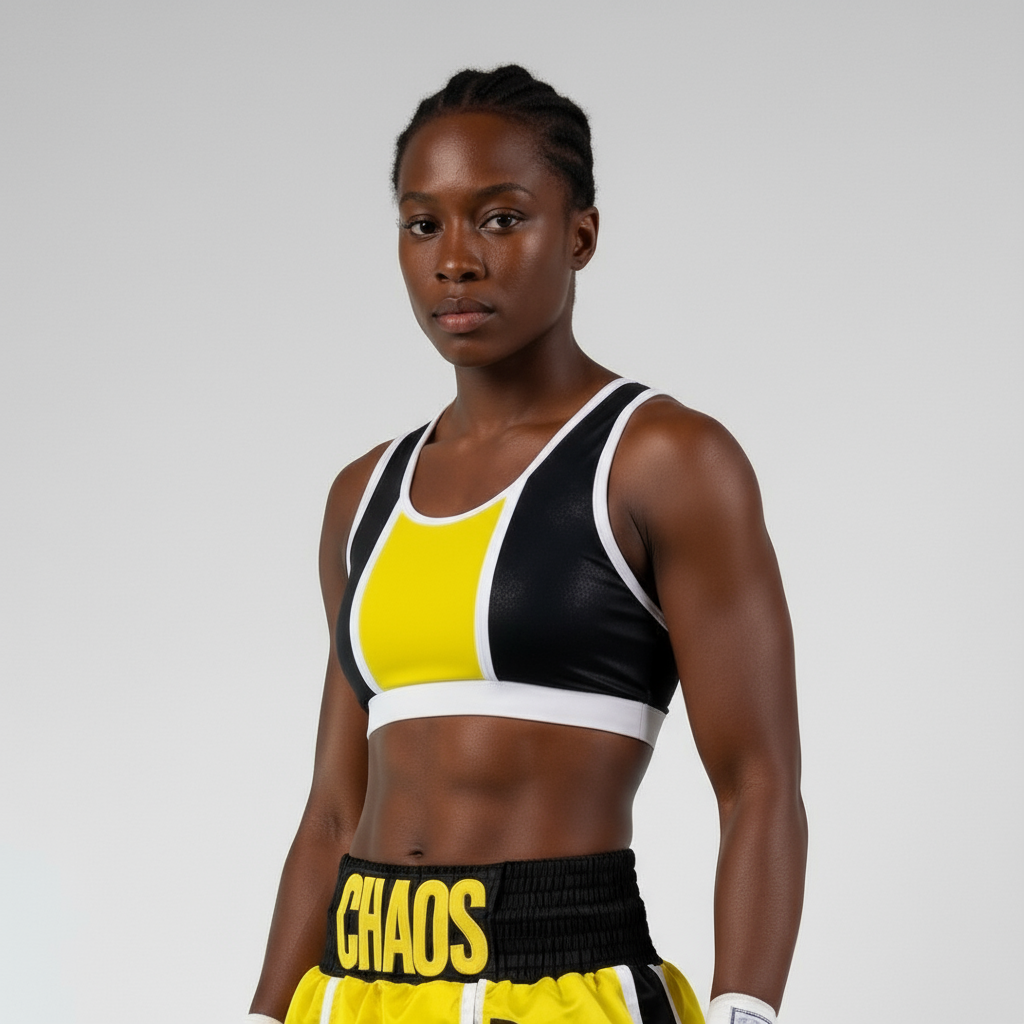 Choose cut, personalise the look and build an MMA/boxing sports bra that supports your movement and shows your identity.