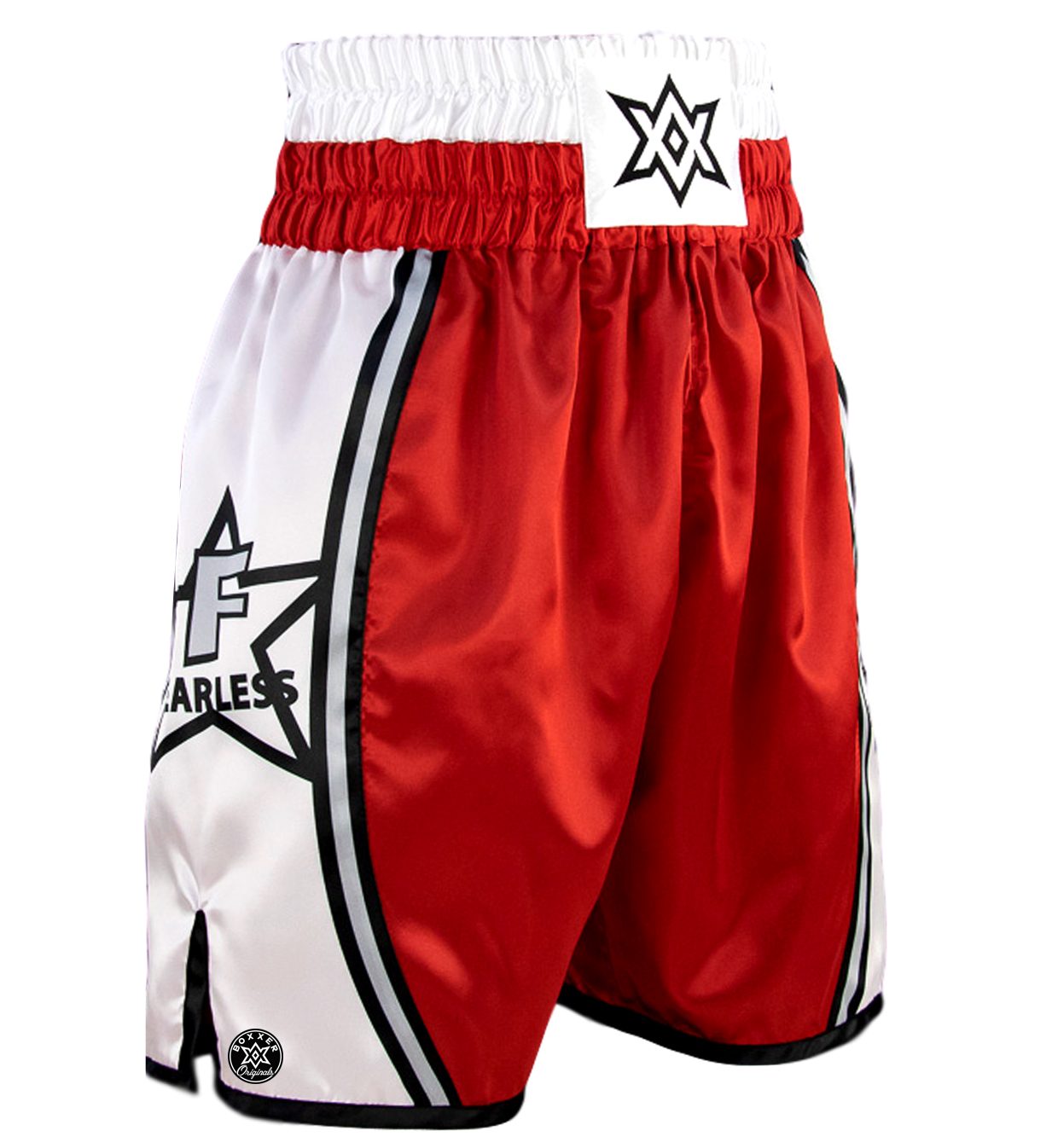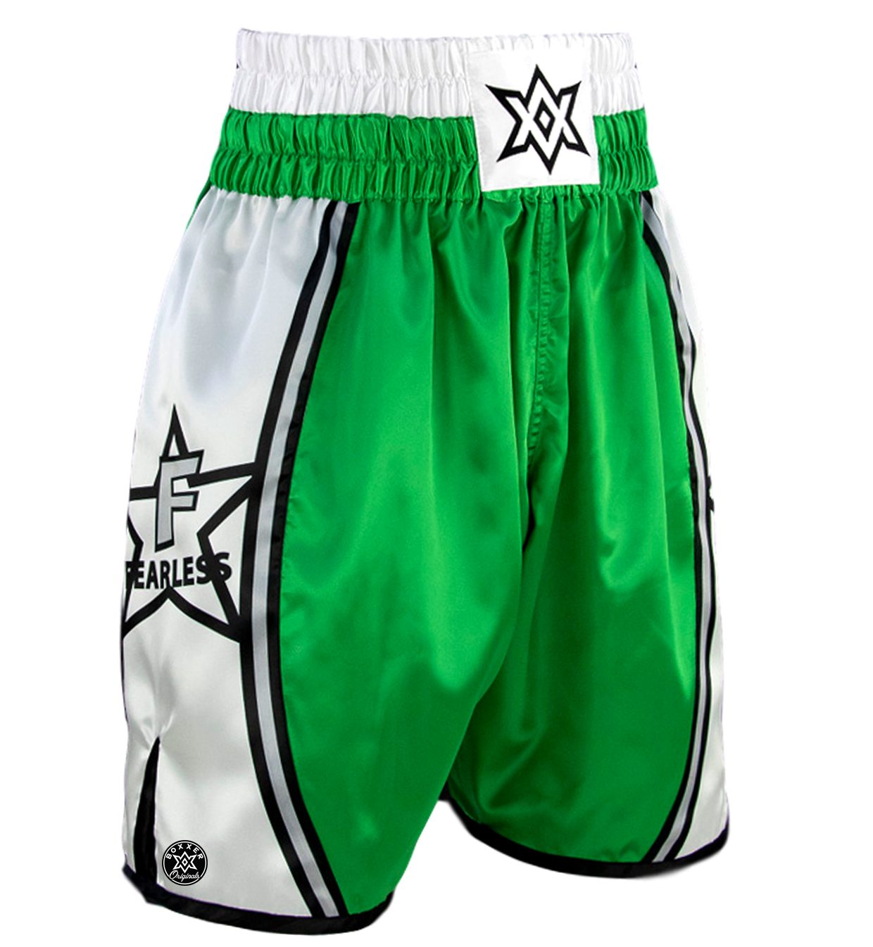 Boxxerworld's new range of ready-made fight shorts provide outstanding style and unaparalleled performance. Constructed using performance satin, these fight shorts combine the finest tailoring and traditional boxing materials. Our top quality polyester satin wicks sweat away for a cool and dry boxing experience. Each pair is hand-stitched using only the best materials and technology for advanced durability. Our waist bands provide maxiumum stretch to accommodate your going guard and include a draw string for added security. At 4 inches tall, our waist band is perfect for the addition of eye-catching embroidery should you wish to add your own name. Generous side splits allow maximum movement and comfort.